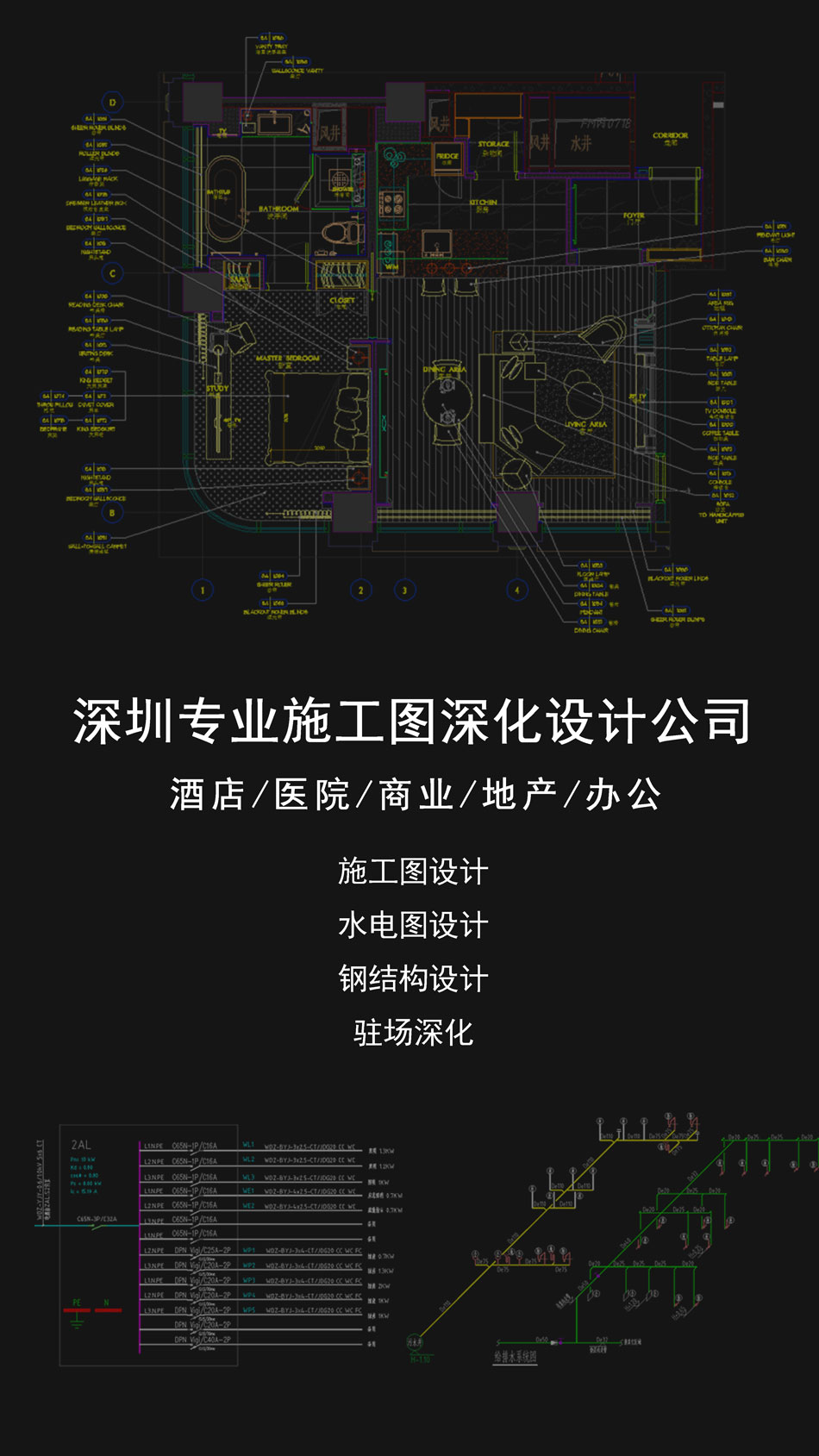 室內(nèi)施工圖設(shè)計(jì)、建筑施工圖設(shè)計(jì)、圖紙深化、給排水設(shè)計(jì)、電氣設(shè)計(jì)、暖通設(shè)計(jì)、消防設(shè)計(jì)、鋼結(jié)構(gòu)設(shè)計(jì)、駐場(chǎng)深化設(shè)計(jì)、竣工圖編制。專(zhuān)業(yè)團(tuán)隊(duì)50人經(jīng)驗(yàn)豐富,高效服務(wù)。
